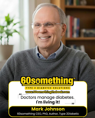 Cut through the confusion of a new Type 2 diagnosis with a step-by-step guide designed specifically for your stage of life. Learn more today and get a FREE guide – Type 2 Diabetes Guide – From -60something- Mark Johnson, CEO, PhD, Author, Type 2 Diabetic like you.